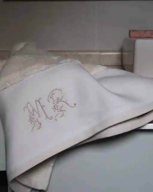 Pon tu sello personal en este conjunto de toallas seleccionando entre cuatro elegantes tipografías: nuestra exclusiva Villalegria®, la clásica Inglesa, la minimalista tipografía Recta, o la impecable Tulipán.